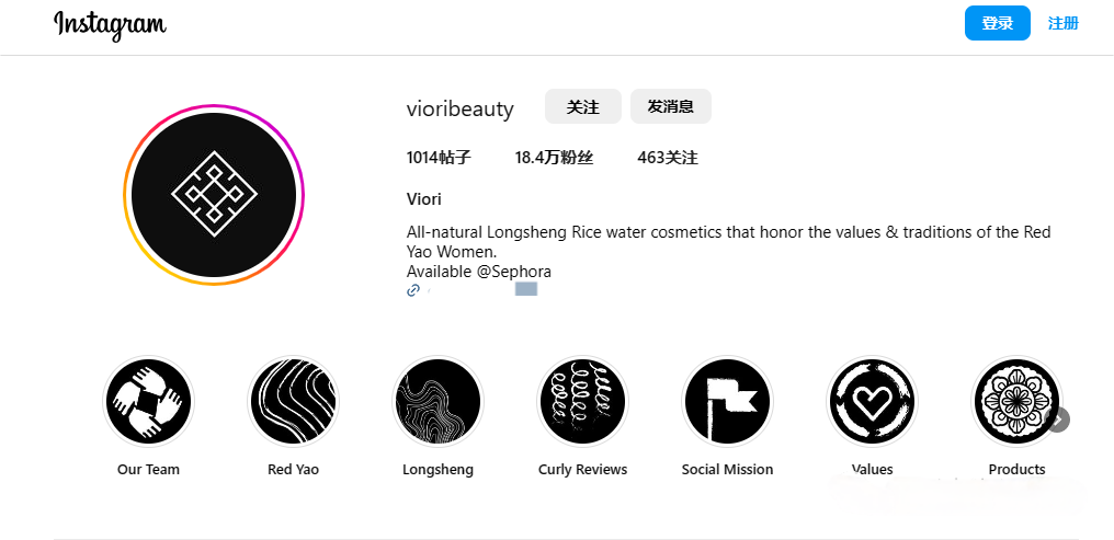 Viori在Instagram和TikTok上的动态均围绕品牌故事展开。其Instagram账号有18.4万粉丝,TikTok上有3.68万,所有内容均讲述红瑶的历史文化和企业理念,以及产品的使用效果。这样的营销方式不仅引人关注和认可,还极大地提高了产品的复购率。