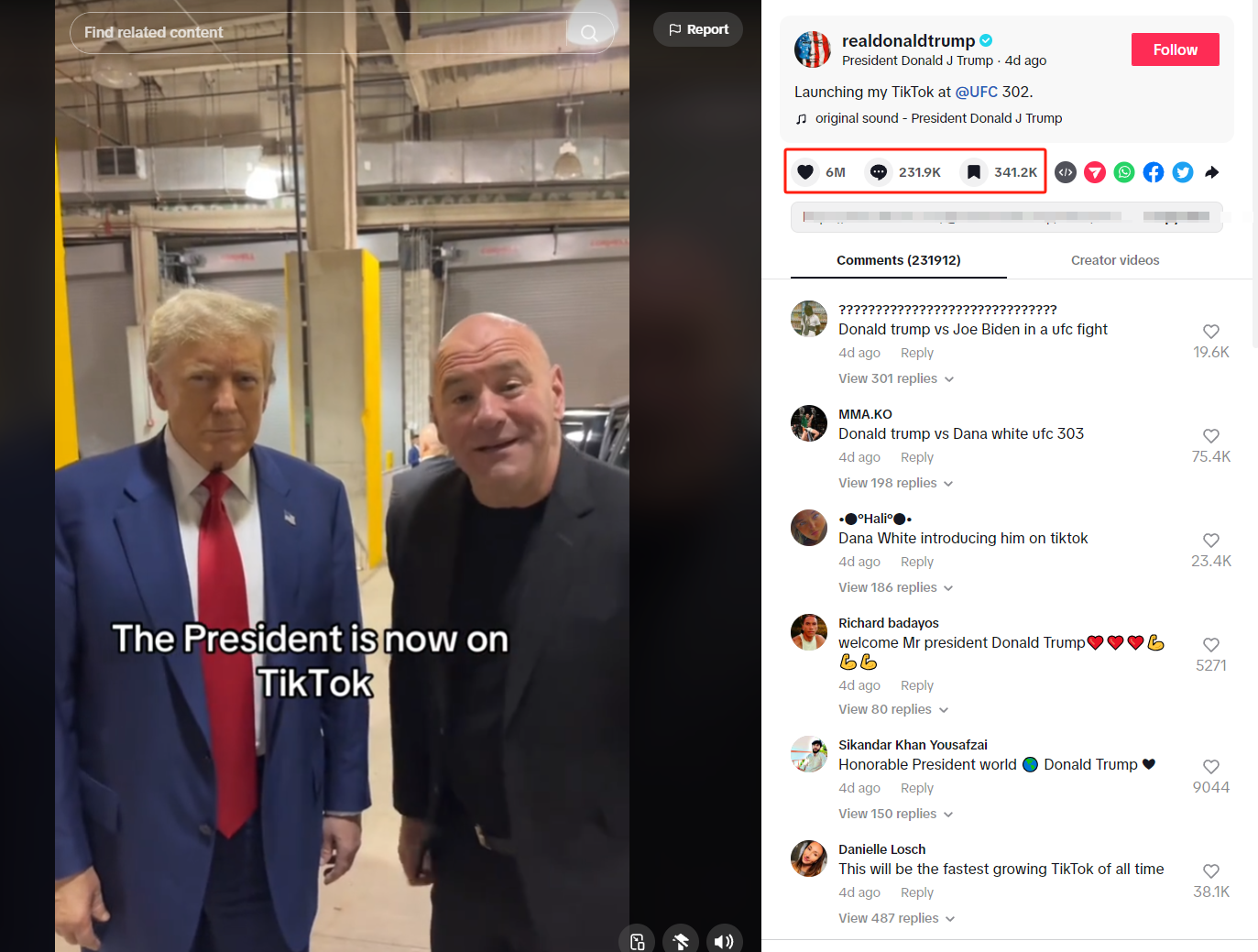所以特朗普的这条首支TikTok视频,为什么能迎来播放量大爆炸,也就不难理解了。