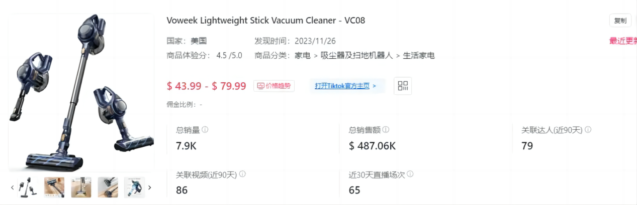 而深扒Voweek的品牌和产品,可以发现,这款Voweek无绳吸尘器能在TikTok上销量火爆,并不是偶然,而是踩准了吸尘器的风口,精准营销的结果。