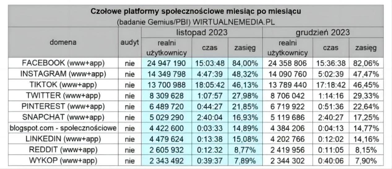 12月与11月波兰社媒数据对比 图源:Mediapanel