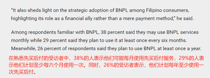 菲律宾受访者先买后付使用情况 图源:The Philippine Star