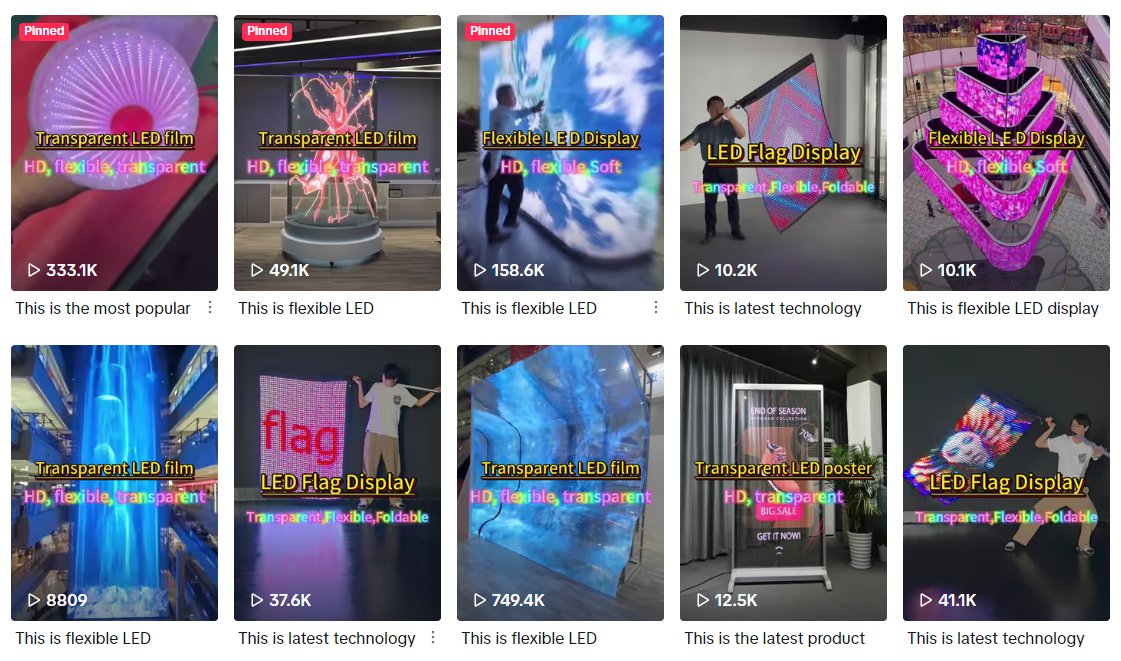内容实拍。这家LED显示屏工厂的视频内容绝大多数都为实拍,这样拍的好处在于能够真实直观地展示产品的效果。通过实拍视频,潜在客户可以清晰地看到LED显示屏在不同应用场景中的表现,无论是透明屏的高透光率,还是广告机的绚烂色彩,这些都让潜在客户能够真实感受到产品的好品质。