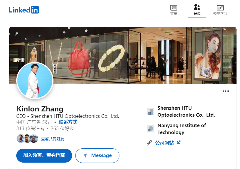 这家LED显示屏工厂同样就开通了领英,如图所示。