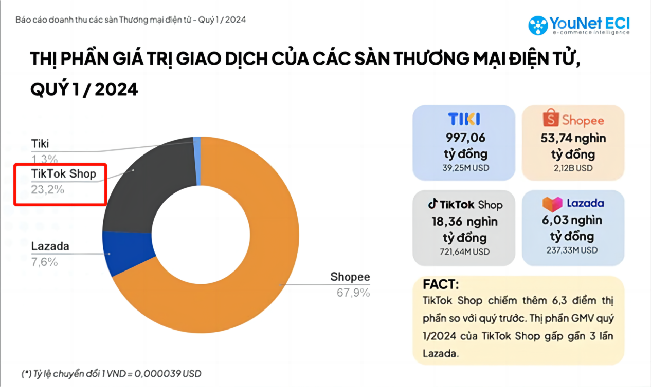 社交电商在越南的发展势头非常强劲。今年第一季度,越南在线消费者平均每周观看13小时的带货直播,其中95%的消费者通过直播购买商品。得益于社交电商的流行,TikTok Shop在越南的表现也非常亮眼。今年第一季度,TikTok Shop的GMV(商品交易总额)达到了18.36万亿越南盾,占比23.2%,仅次于Shopee。