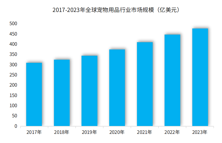这也促成了智能宠物用品市场的快速崛起。2023年,全球宠物用品市场规模已经超450亿美元,预计到2027年市场规模预达到677.25亿美元,复合年均增长率约为3.03%。