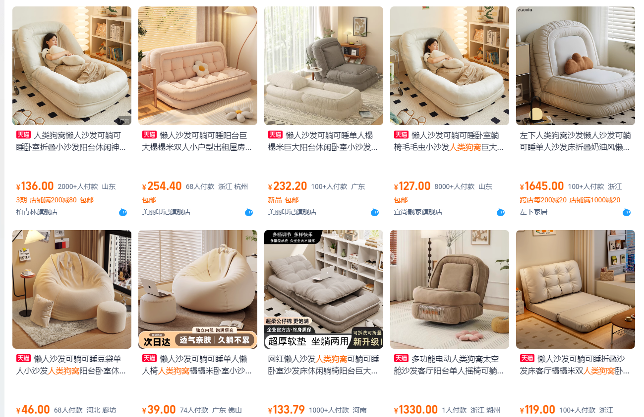 在国内,类似的产品也有,甚至某宝上一搜一大把,它就像是早起出现的懒人沙发,都是因舒适和解压而存在。甚至某宝上的大部分商品在价格上要远低于Plufl的400美元,但是它们在海外都没有像Plufl这么火。