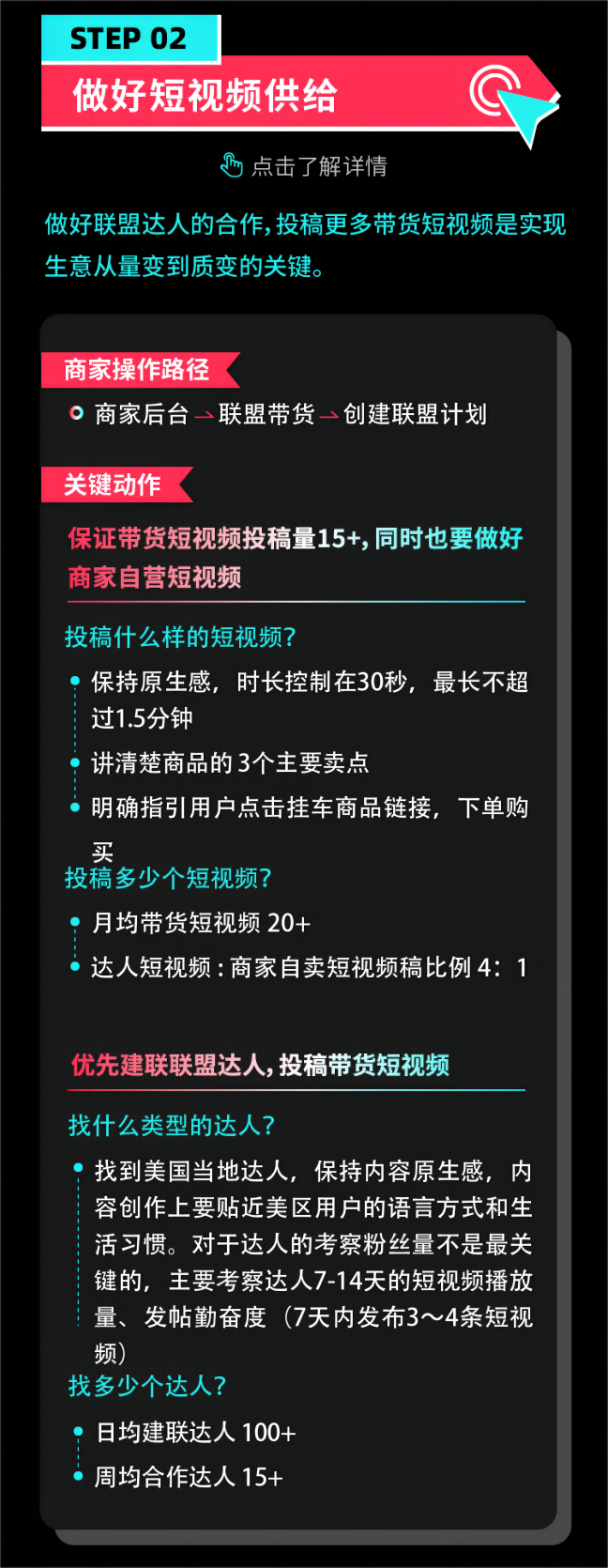 TikTok提供全方位的运营支持,从选品、视频制作、推广到售后服务,覆盖整个营销链路。商家可以通过平台的运营指导和工具,优化产品的推广策略,提高营销效果。