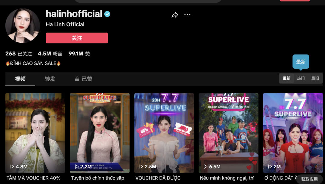 而在刚刚过去的6.6越南电商大促中,越南直播带货一姐武河玲(Võ Hà Linh)更是在4小时内创下了超过3300万人民币(约合450多万美元)的销售额。