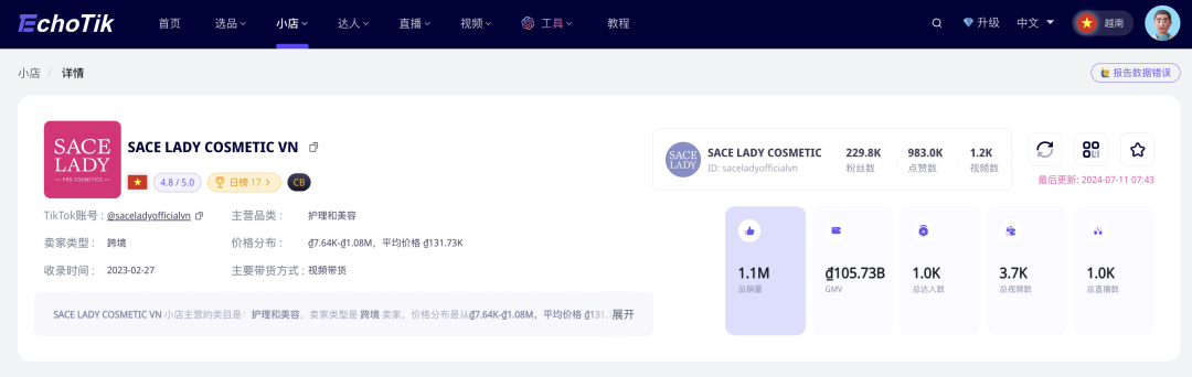 目前,该品牌在TikTok越南小店已经售出超过110万件,与超过1000名达人建立了关系,还举办过1000多场直播,总GMV超过了一千亿越南盾(417万美金)。