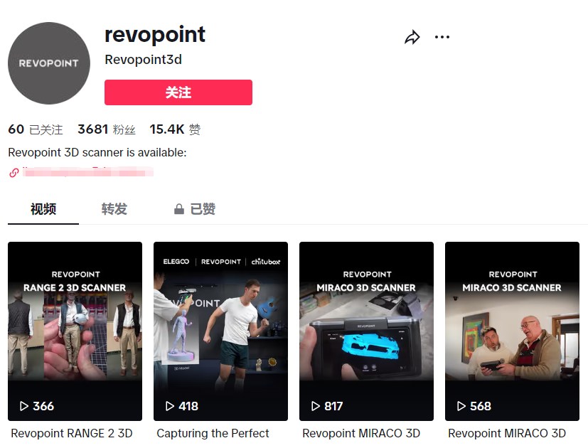 同时,Revopoint还积极利用社交媒体进行营销推广。在Facebook、YouTube和TikTok上,Revopoint发布了大量的短视频和教程,展示产品的实际应用效果,并与用户进行互动,提升了用户对产品的理解和信任。
