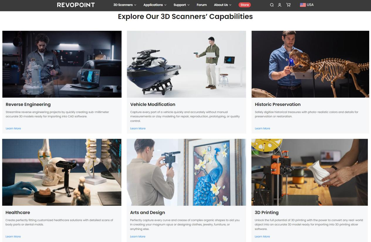 高客单价和技术门槛的新兴产品,市场教育必不可少。Revopoint深知这一点,通过建设独立站,打造了一个集产品展示、品牌传递、用户互动于一体的平台,逐步打破认知壁垒,培育用户心智。