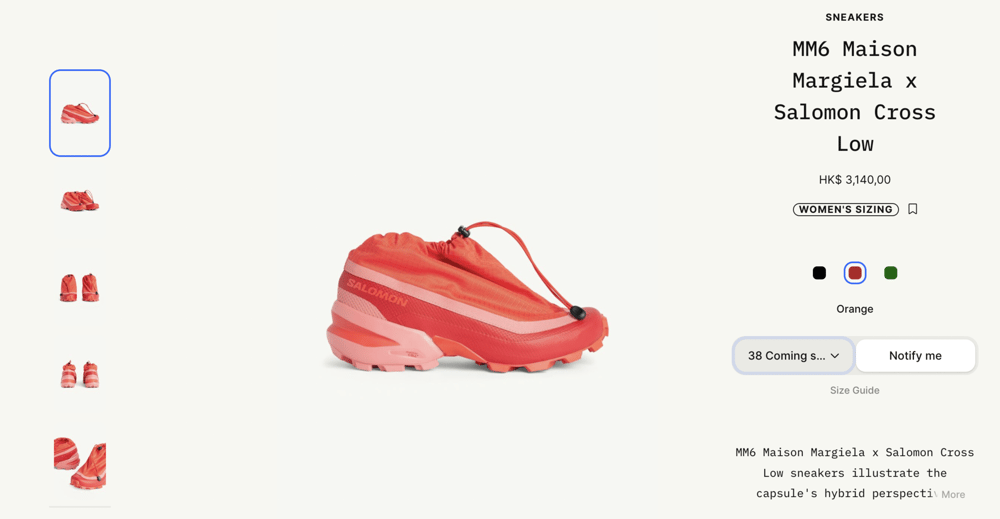 在美国,Salomon利用了超级碗这样的顶级舞台,通过蕾哈娜穿着其联名款登台表演,迅速引爆了市场关注。在表演结束的24小时内,Salomon在二级市场的搜索频率较上一周同期猛涨800%,品牌官网上同款鞋品的所有码数全部显示缺货。