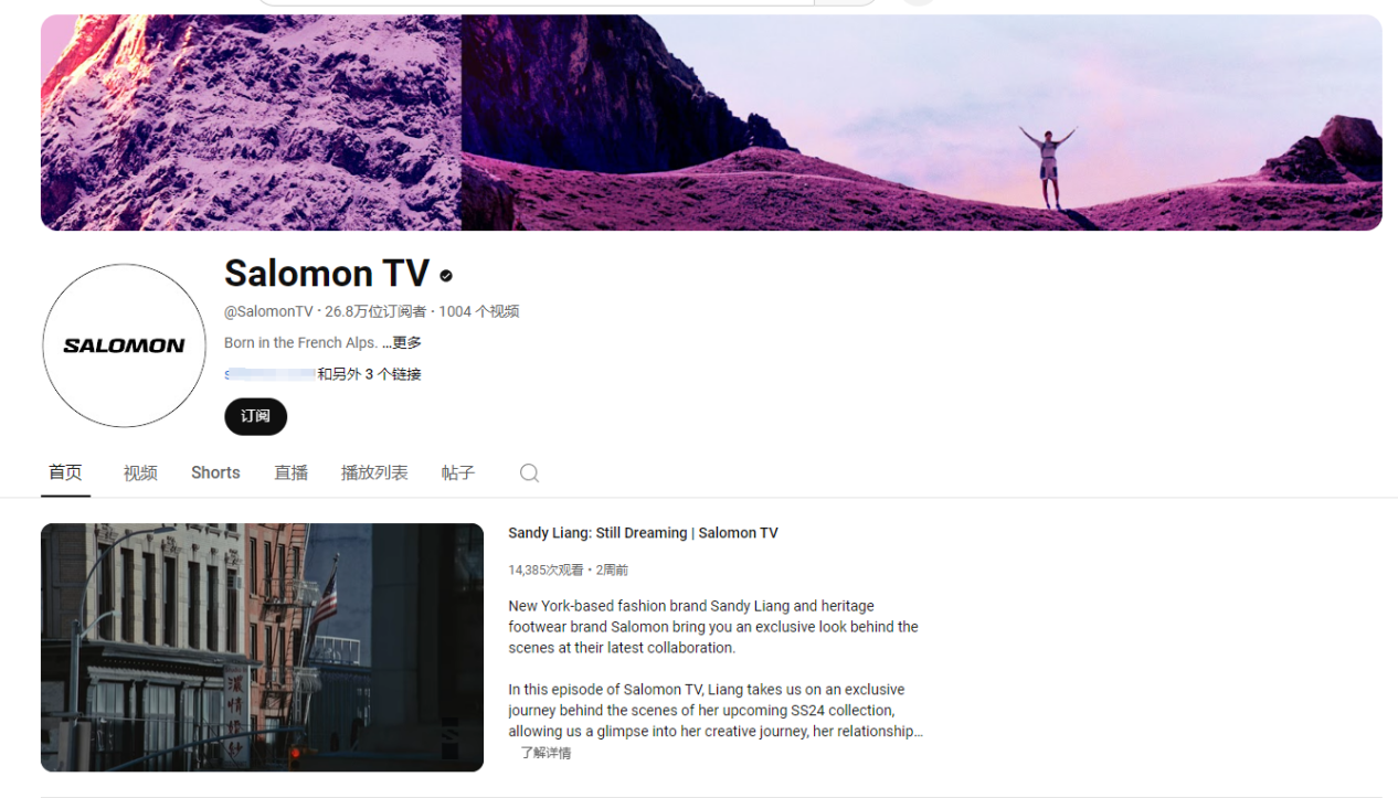 在YouTube上,Salomon通过访谈、微电影和广告等多种形式,生动地讲述品牌背后的故事与文化,展现对专业创新的不懈追求。这些内容不仅展示了品牌的深度与广度,还帮助沉淀品牌价值,建立了强烈的品牌认同感。截至今年7月,Salomon在该平台上发布了1005个视频,积累了26.7万粉丝。