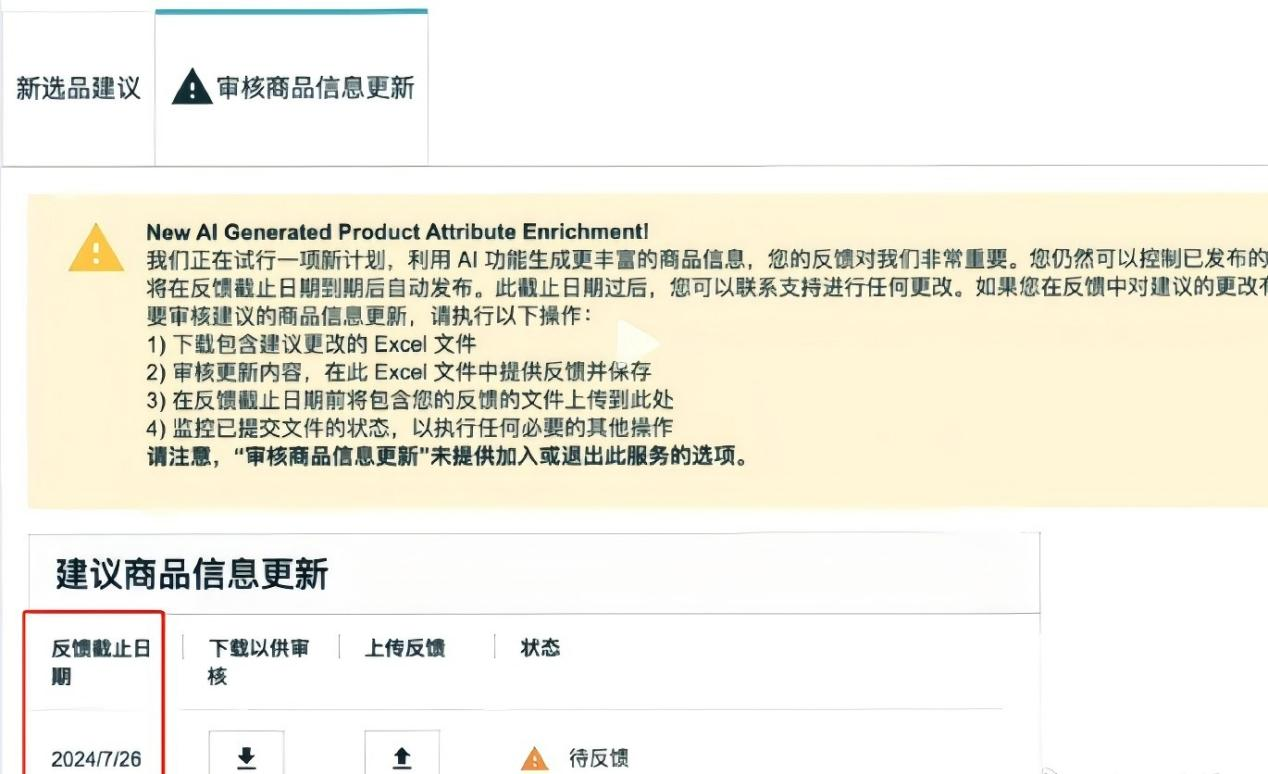 亚马逊在进行一项新计划,利用AI功能生成更丰富的商品信息,如果卖家没有在截止日期之前进行操作,亚马逊系统就会默认修改,在反馈截止日期到期后自动发布。不过,卖家仍然可以控制已发布的更改。