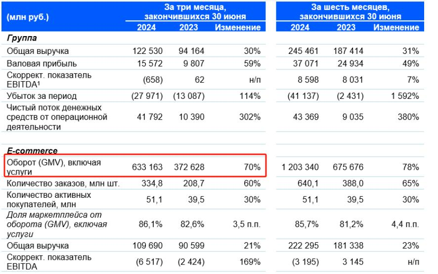 1.Ozon营业额2024年Q2增长70%