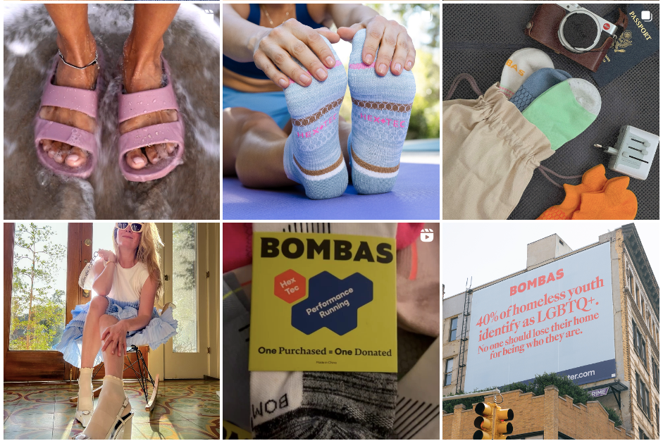 在Instagram上,Bombas展示了大量视觉上富有冲击力的内容。这些内容不仅展示了产品的质量和功能,还讲述了品牌背后的感人故事。